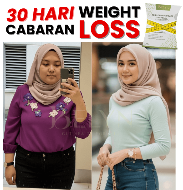 Belyn ni minuman serbuk tribiotic (prebiotik, probiotik & postbiotik) untuk bantu: